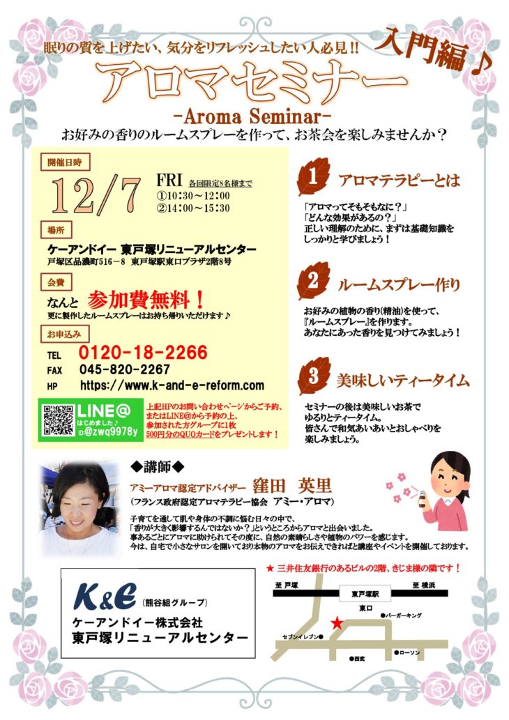 『アロマセミナー』入門編♪ 12/7(金)(終了しました)(12/8イベント情報更新)