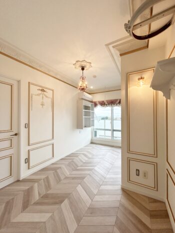 | ご提案内容 | お客様が要望事項をしっかりまとめてくださったので、資料を読み込んで漏れがないように努めました。 拘りのフレンチインテリアを活かすために工夫を重ね、まるで海外のような素敵なお部屋に生まれ代わりました。 |