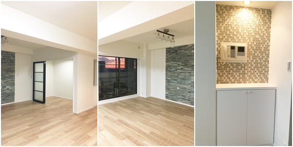 | お客様のご要望 | 間仕切り壁をとっておおきなリビングにしたい。 明るい雰囲気の部屋にし、アクセントでタイルや石を貼りたい。 |