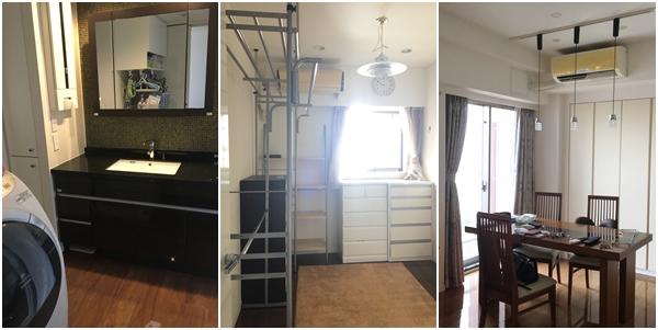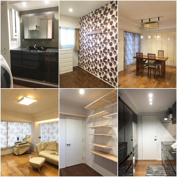 | ご提案内容 | 洋室の着替え部屋が使いづらくお悩みでしたので、収納棚とハンガーパイプを壁一面に設け、使いやすい部屋に改修しました。 壁紙のクロスはお客様こだわりのデザインクロスで、より一層おしゃれな雰囲気に仕上がりました。 リビングの照明プランはプロの照明デザイナーにお願いし、以前よりも明るく、かつ落ち着いた雰囲気のお部屋に。 洗面台は使いやすい高さに調整し、お手入れも簡単になりました。 |